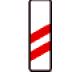 Bahnübergang mit dreistreifiger Bake etwa 240 m vor dem Bahnübergang. Die Angabe erheblich abweichender Abstände kann an der dreistreifigen, zweistreifigen und einstreifigen Bake oberhalb der Schrägstreifen in schwarzen Ziffern erfolgen. |