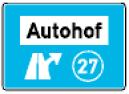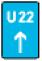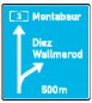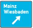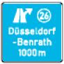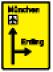 Auf Kraftfahrstraßen oder autobahnähnlich ausgebauten Straßen weist das entsprechende Zeichen mit schwarzer Schrift auf gelbem Grund auf die Ausfahrt hin. Das Zeichen kann auch auf weißem Grund ausgeführt sein. |