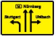 Verkehrslenkungstafeln geben den Verlauf und die Anzahl der Fahrstreifen an, wie beispielsweise: |