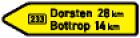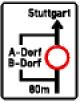 Die Zeichen 454 und 455.1 können durch eine Zielangabe auf einem Schild über den Zeichen ergänzt sein. Werden nur bestimmte Verkehrsarten umgeleitet, sind diese auf einem Zusatzzeichen über dem Zeichen angegeben. |