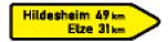 Die Entfernungstafel gibt Fernziele und die Entfernung zur jeweiligen Ortsmitte an. Ziele, die über eine andere als die gerade befahrene Autobahn zu erreichen sind, werden unterhalb des waagerechten Striches angegeben. |
