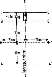 Das Fahrgeräusch wird auf der Messstrecke nach Abbildung 1 bei beschleunigter Vorbeifahrt in 7,5 m seitlicher Entfernung von der Fahrspurmitte nach der in § 49 Absatz 2 Nummer 1 genannten Richtlinie mit folgender Abweichung ermittelt: